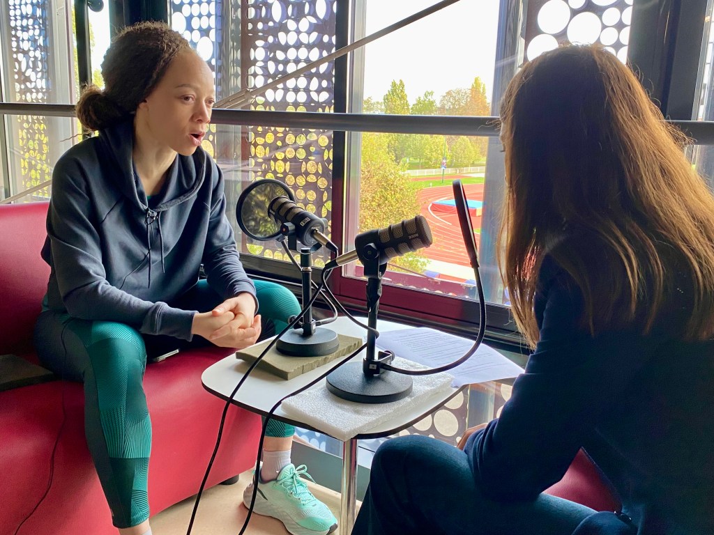Nantenin Keita, figure emblématique de l’équipe de France de para athlétisme répond aux questions de la journaliste Annabelle Baudin